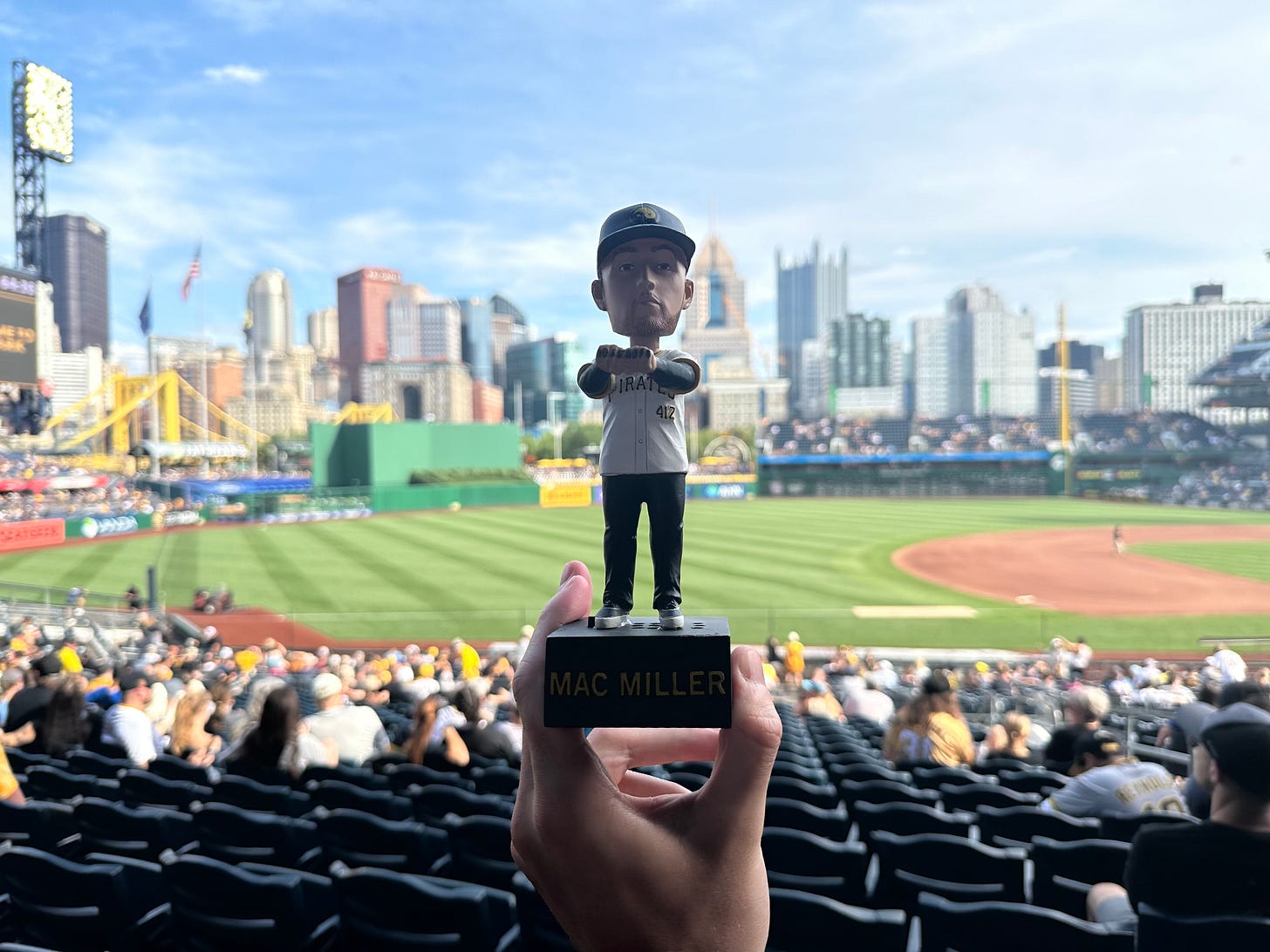 What’s up everyone and Happy Sunday - I spent the weekend up in Pittsburgh with my boy Tommy Craft. It was Mac Miller Bobblehead Night at PNC Park, and it was an incredible experience. The lines were crazy, the Mac stories shared by fans were really special, and Mac’s Mom and Brother threw out the ceremonial first pitch. Mac’s global impact lives forever, but his impact in Pittsburgh truly transcends community.