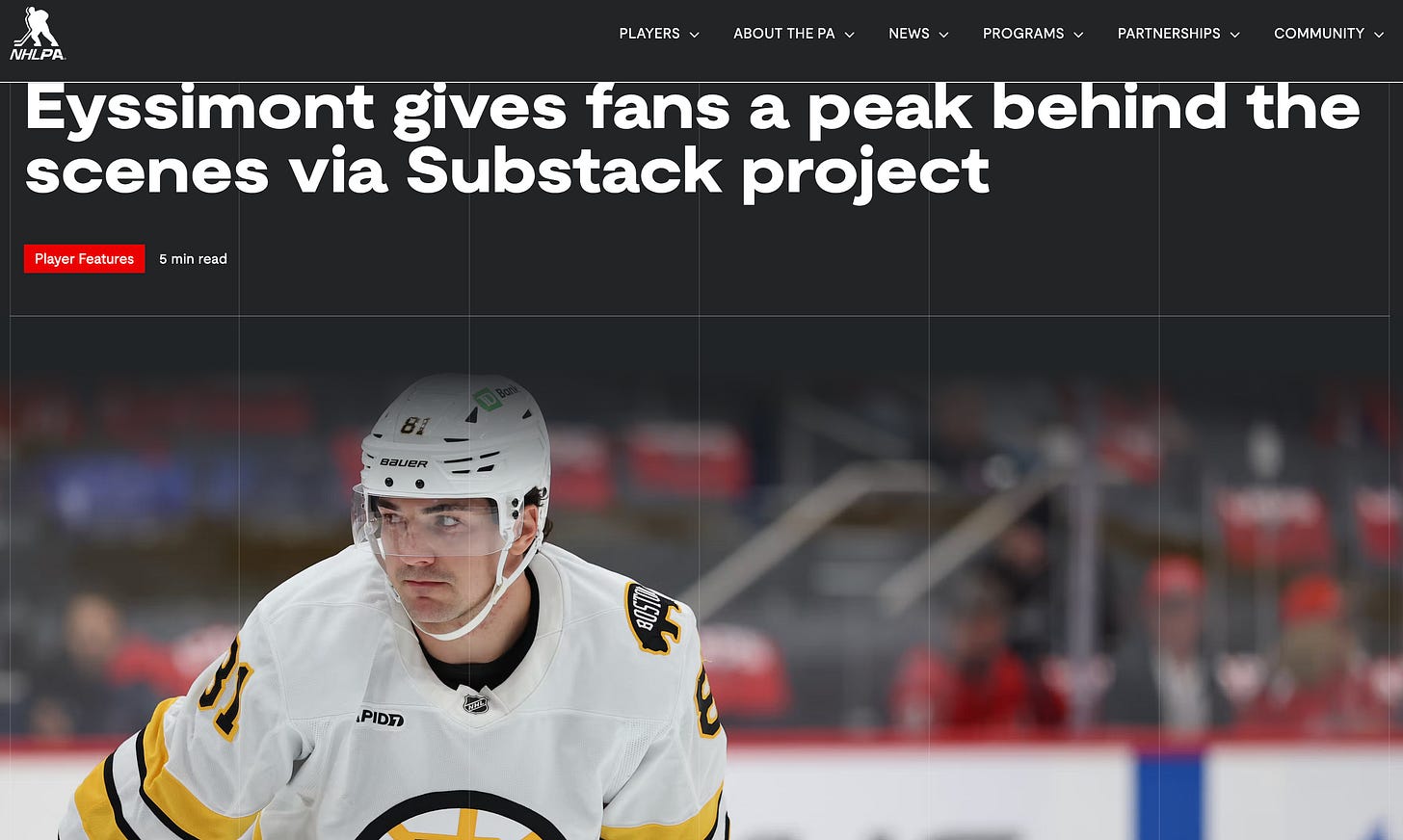 NHL Players 🤝 Substack — first I’ve read about a Substack from an NHLer, love to see it.
