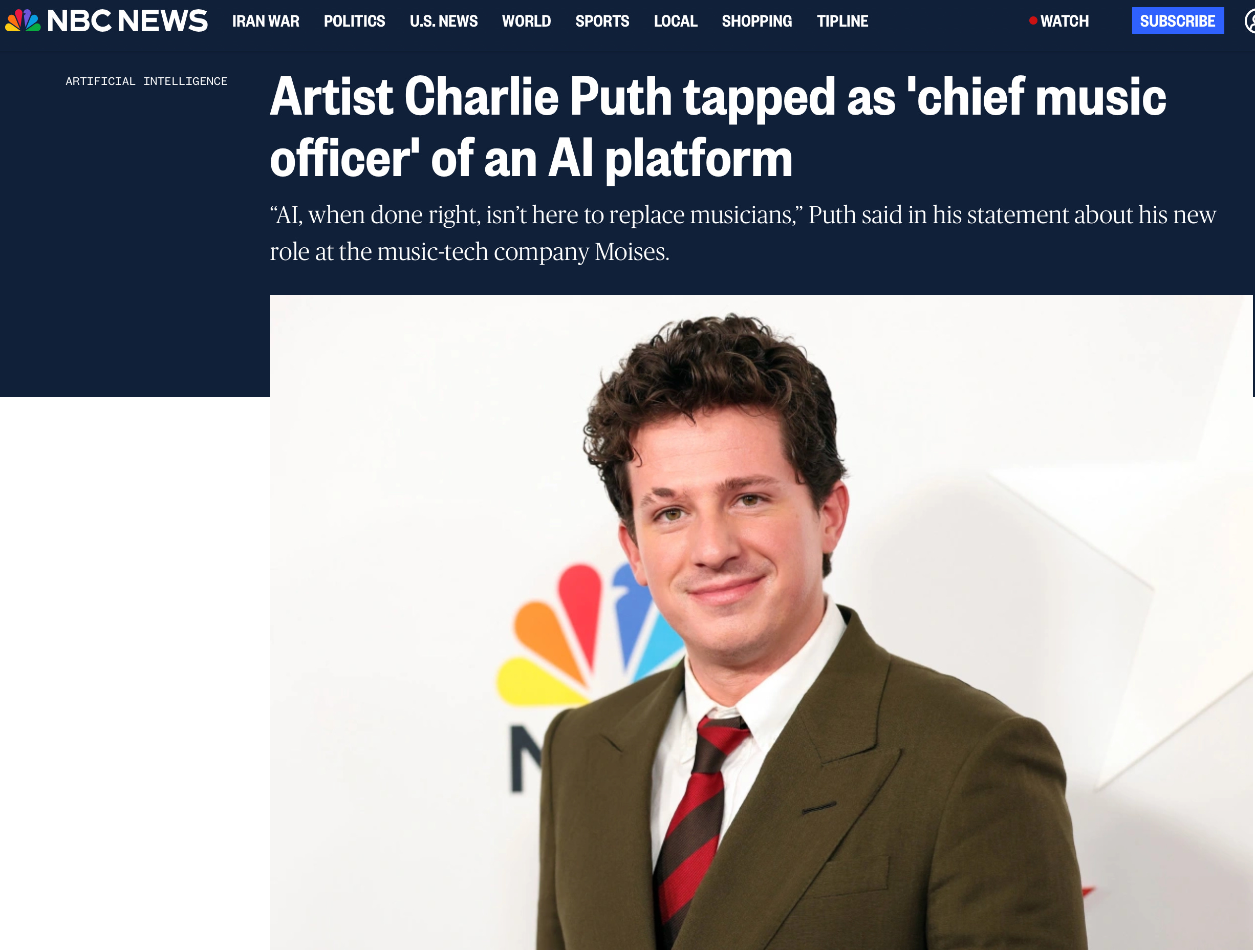 Another “adjacent to the ‘Creative Director’ move”. Music AI company taps Charlie Puth for reach, credibility, and for his deep knowledge.