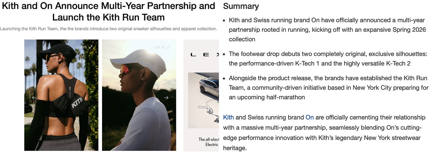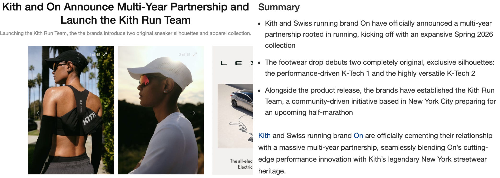 Partnerships are more than just clothing drops in 2026…The Kith On team will compete in its first race in April in NYC.